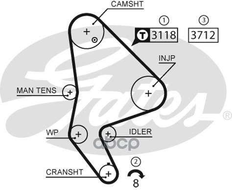 Ремень ГРМ Hyundai Accent 1,3-1,5 SOHC/Getz 1,3 Gates 8597-15568 110STS22/220S8M;2431222613;2431222611;2431222612;220S8M880;5568XS;