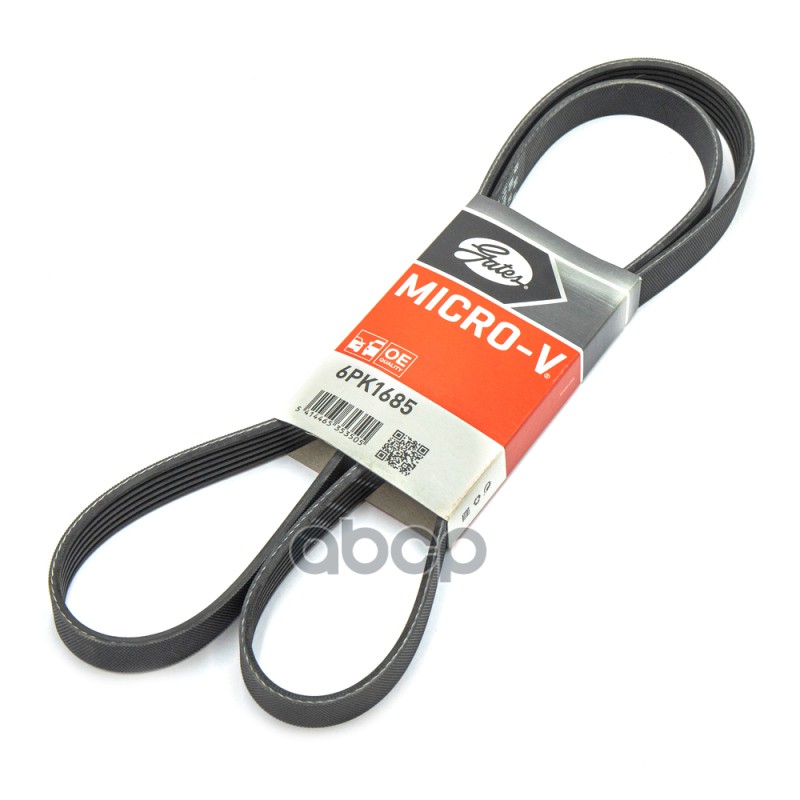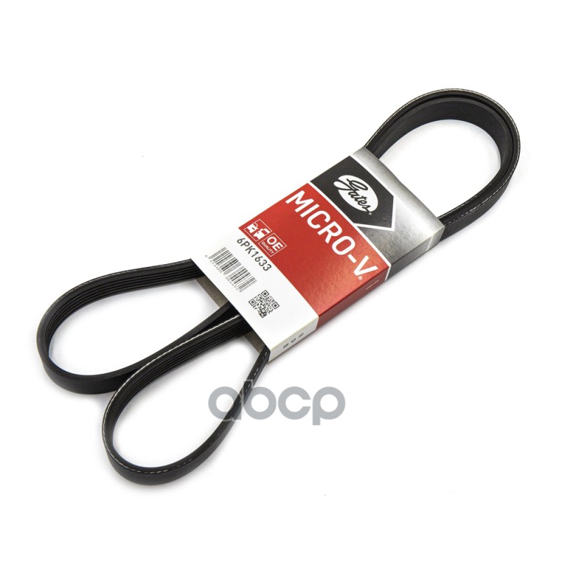 Ремень 1630 6PK привода агрегатов Газель, Соболь дв.ГАЗ-560 с ГУР, AUDI, FORD, RENAULT, SUZUKI, VOLVO Ремень поликлиновый Gates 6PK1630 MICRO-V AT-EPDM Эффективная длина (мм) 1630Внешняя окружность (мм) 1643.8Количество ребер 6Ширина верха (мм) 21.36Матер