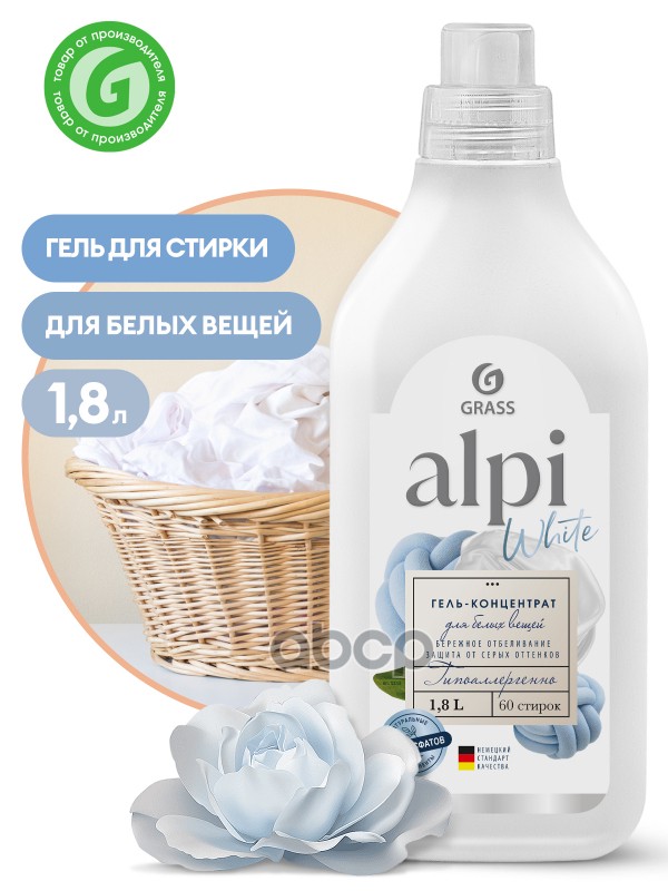 гель для стирки концентрированное жидкое средство для белых вещей 'ALPI white gel' (1.8л)