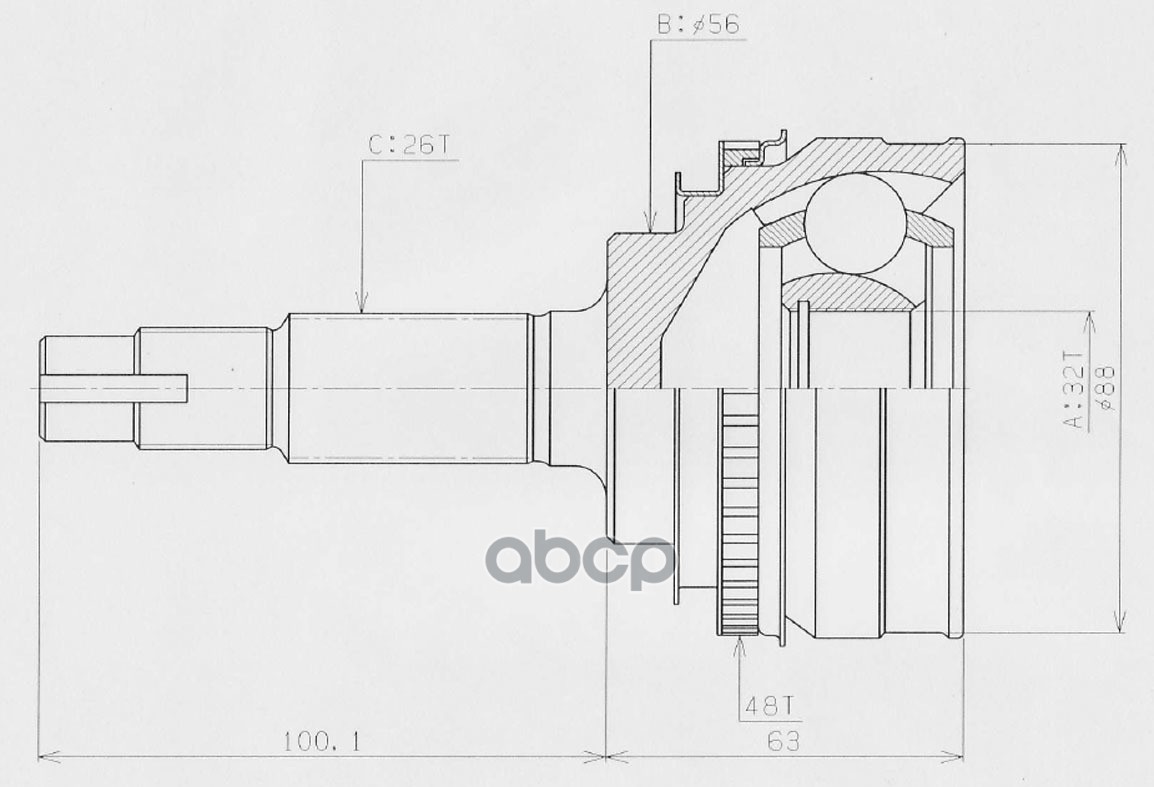 ШРУС наружный /задний правый /левый HDK для Toyota Camry 1990-1994 SV32 SV33 24*56*26 TO-032A48 4341032281 24**56**26 CAMRY PROMINENT Camry SV32, 33 3SFE 90-94, VZV20, 3# 87-94 ABS