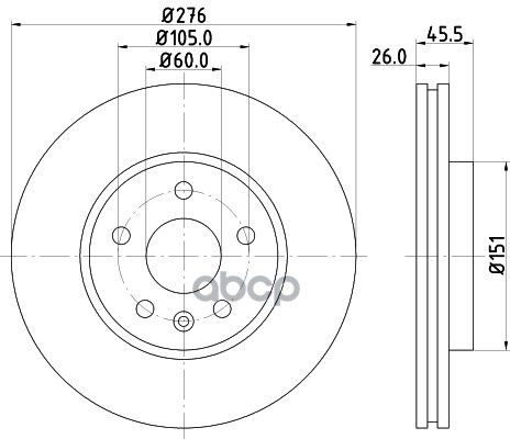 Бренд: HELLA, артикул: 8DD355116-351, Тормозной диск с покрытием, передняя ось. |