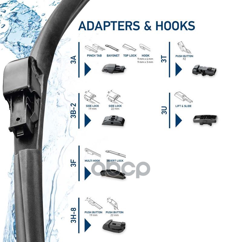 Бренд: HELLA, артикул: 9XW358053261, щетка бескаркасная универсальная 650/26' CleanTech2, мультиадаптер. |