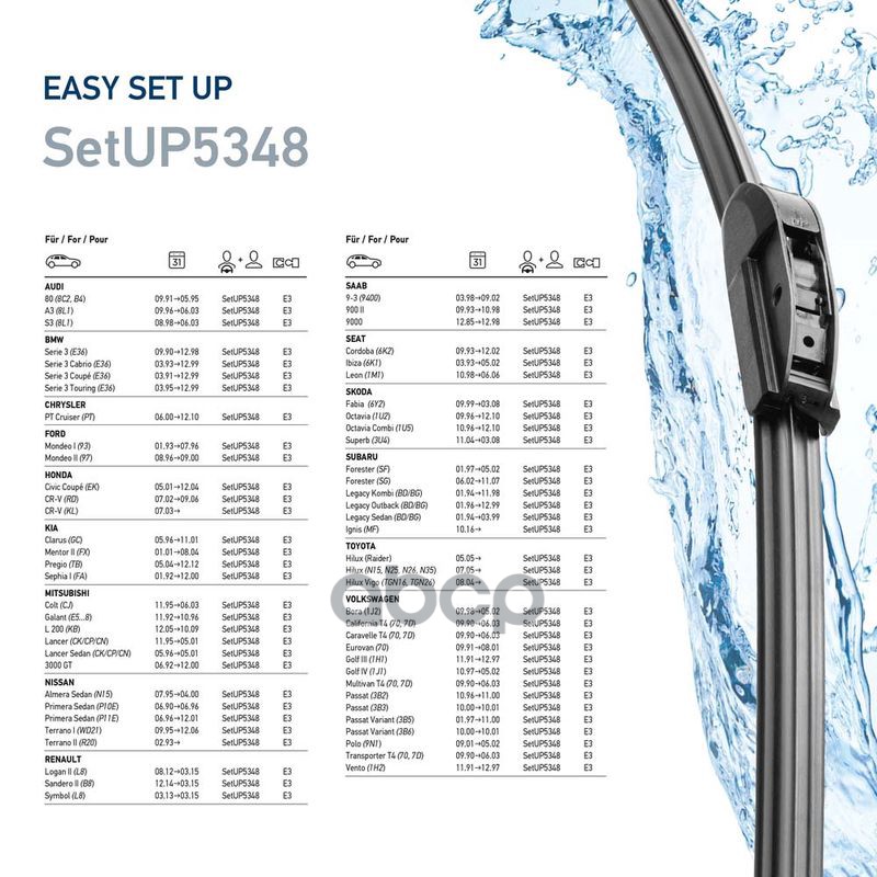 Наименование: Комплект щеток стеклоочистителя EasySet SetUP5348 525мм/475мм