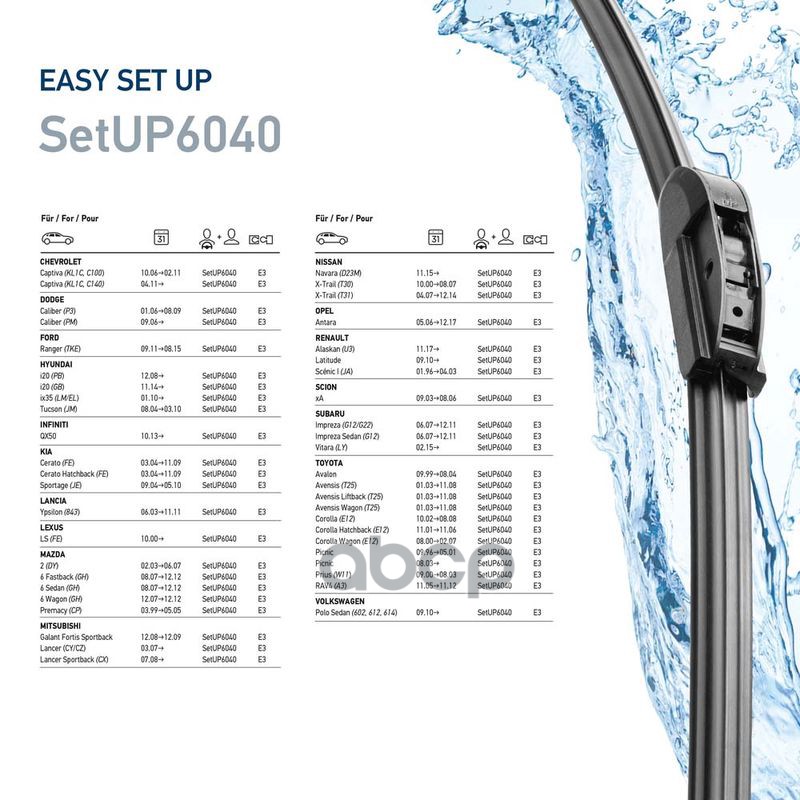 Наименование: Комплект щеток стеклоочистителя EasySet SetUP6040 600мм/400мм