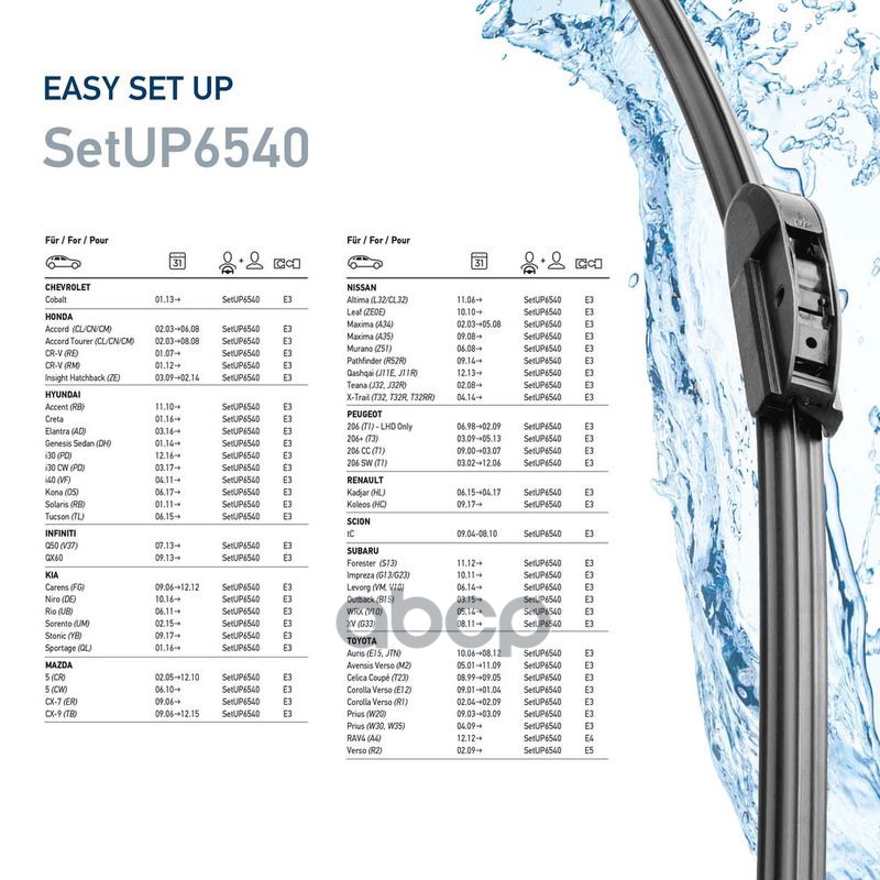 Наименование: Комплект щеток стеклоочистителя EasySet SetUP6540 650мм/400мм