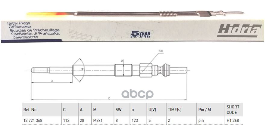 Купить запчасть H1368 Свеча накала с доставкой в Эль-Монте.