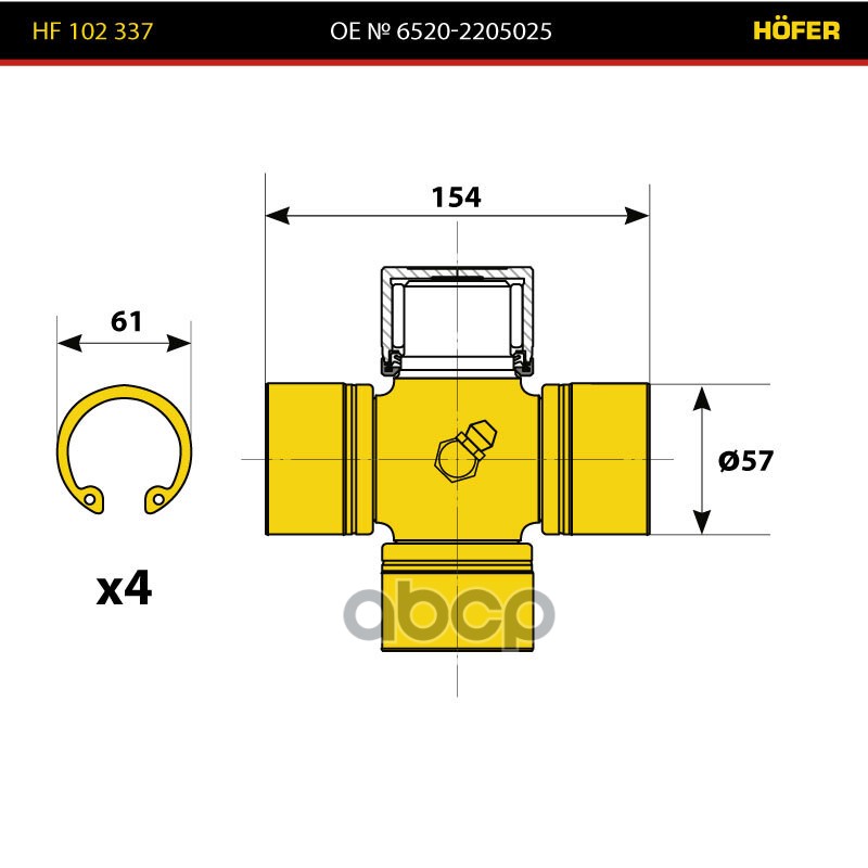 Купить запчасть HF102337 Крестовина КАМАЗ 6520 (57*152) основ. кард. большая, MAN F90/L2000 с доставкой по России.