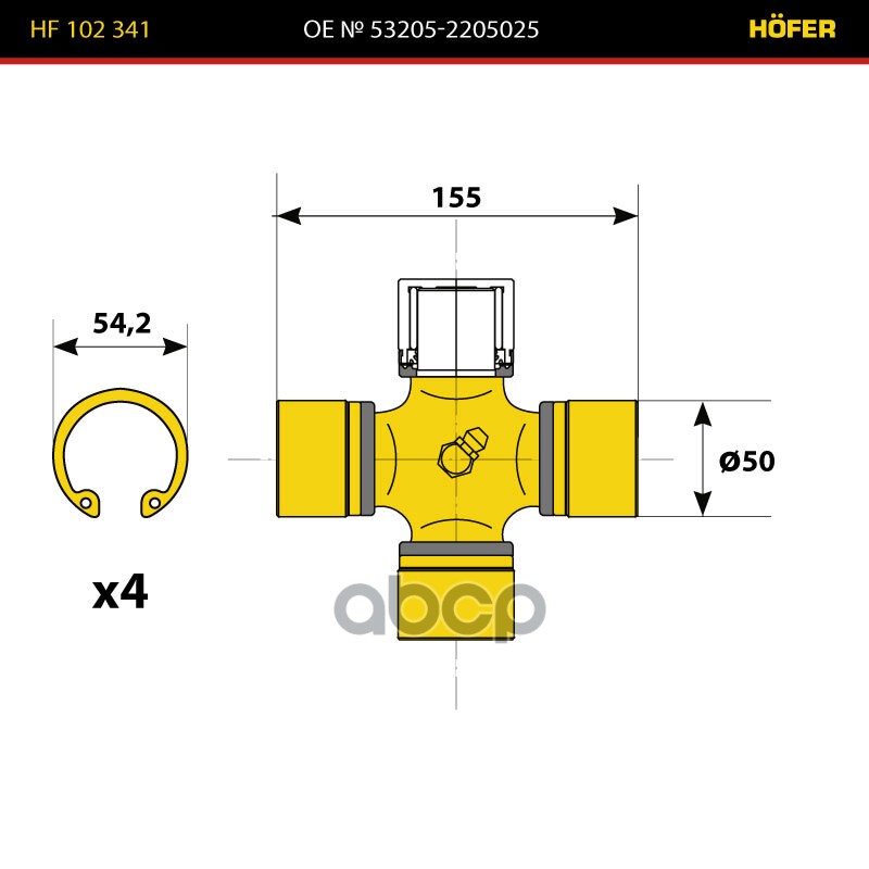 Купить запчасть HF102341 Крестовина КАМАЗ 53205 (50*155) основ. кард. большая с доставкой по России.