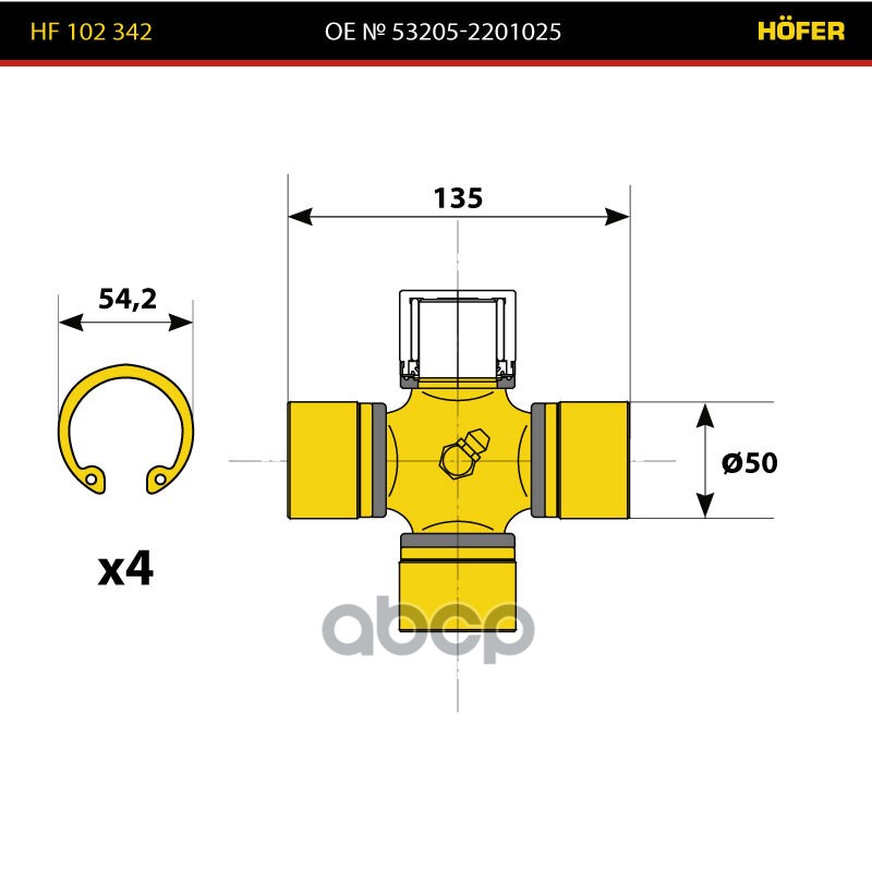 Купить запчасть HF102342 Крестовина карданного вала КамАЗ-65115 малая в сб. У53205-2201025 с доставкой в Эль-Монте.