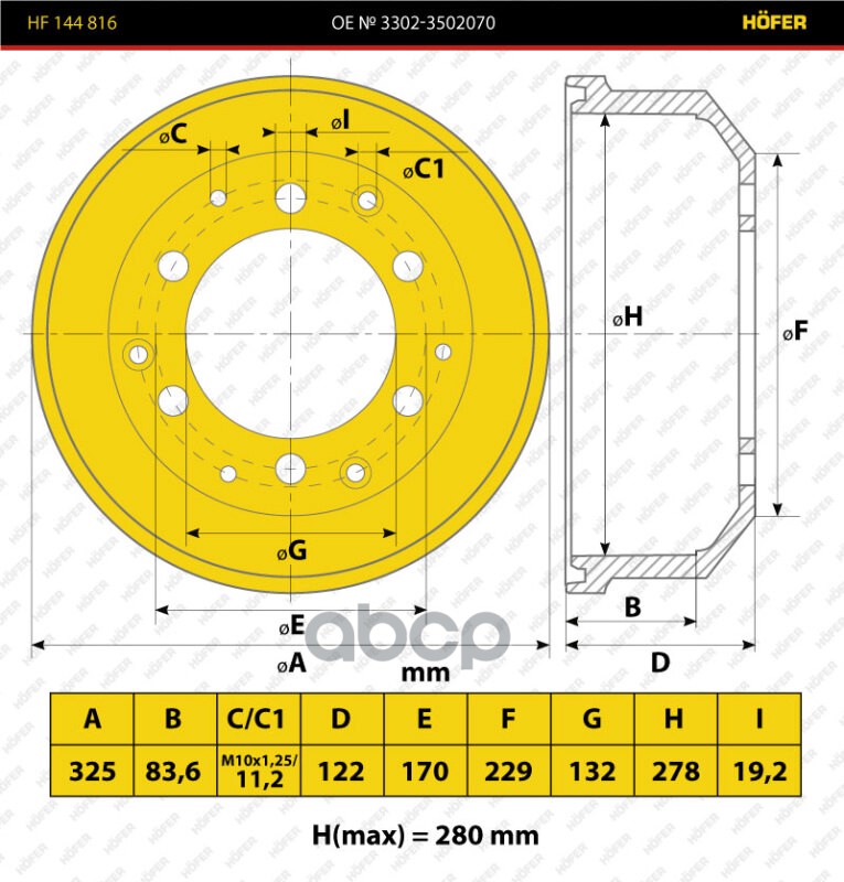 Купить запчасть HF144816 Барабан тормозной Г-3302 Hofer чугун без упаковки 3302-3502070 с доставкой в Эль-Монте.