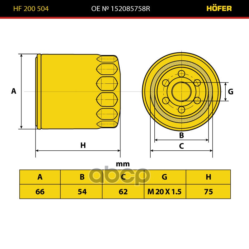 Купить запчасть HF200504 Фильтр масляный Lada Vesta; Renault Duster, Logan, Sandero (1.6 H4M) Hofer 152085758R ST8023 с доставкой в Эль-Монте.