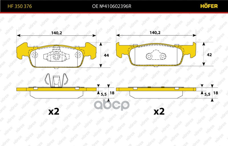 Наименование: Колодки тормозные передние "Premium" Renault Logan II 8V, (140мм) HF 350 376 HOFER