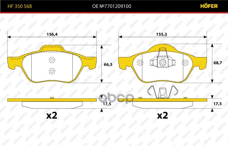 Купить запчасть HF350568 Колодки тормозные Renault Megan II (R15'') 02-08-, Scenic 03-09 передние Hofer 7701209100 с доставкой в Эль-Монте.