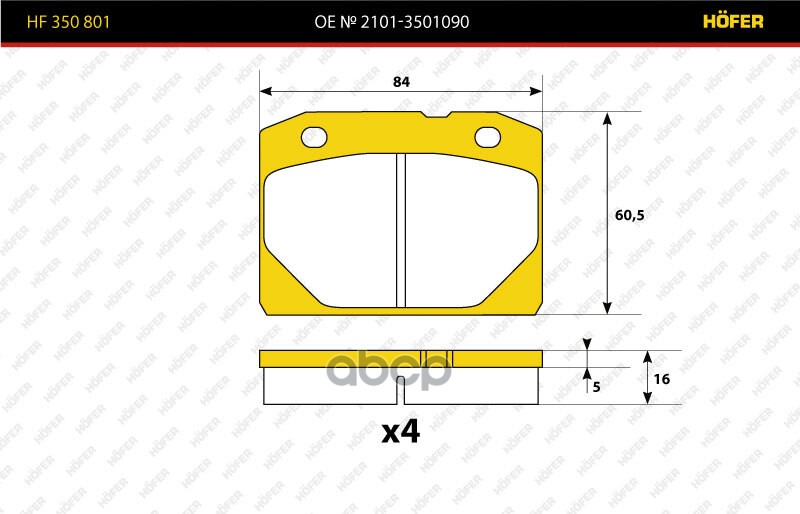 Наименование: Колодки тормозные ВАЗ 2101 передние Hofer 2101-3501090 ST3501