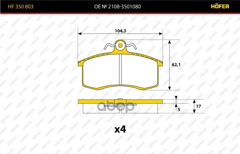 Колодки тормозные ВАЗ 2108 передние Hofer 2108-3501080 ST3502