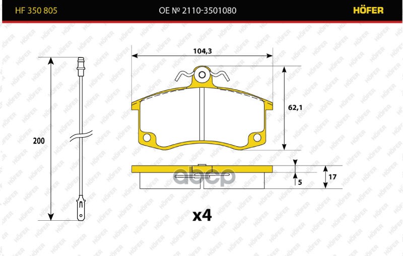 Наименование: Колодки тормозные ВАЗ 2110 передние Hofer 2110-3501080 ST3503