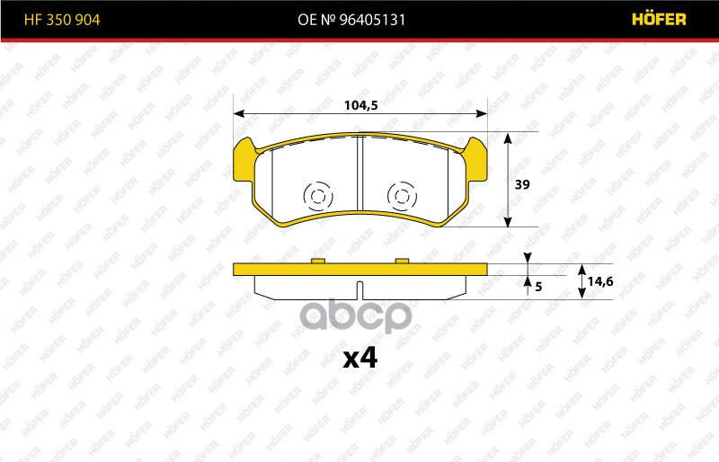 Наименование: Колодки тормозные задние диск. Chevrolet Lacetti 1.8 (-07) HF 350 904 HOFER
