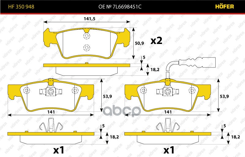 Наименование: Колодки тормозные задние диск. Volkswagen Touareg (-10) HF 350 948 HOFER