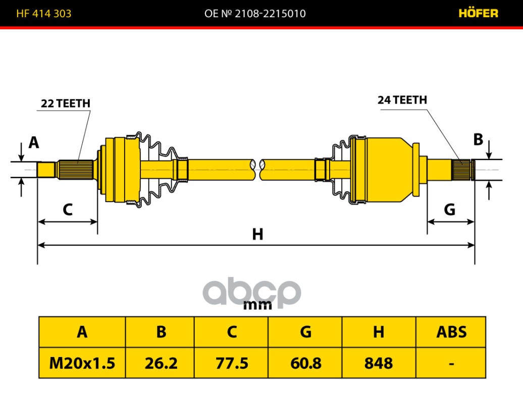 Купить запчасть HF414303 Привод ШРУС правый в сборе ВАЗ 2108 Hofer 2108-2215010 с доставкой в Эль-Монте.