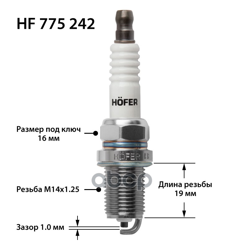 Купить запчасть HF775242 Свеча зажигания ГАЗ/УАЗ с дв. ЗМЗ-405/406/409 (1мм, R, Cu, ключ 16) (к-т 4 шт) с доставкой по России.
