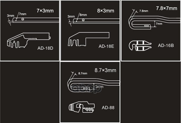 Наименование: Щетка стеклоочистителя 410 мм бескаркасная к-т 2 шт, 4 адаптера(2626)