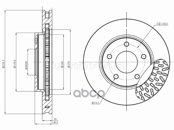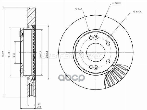 Диск тормозной (Спереди) Mitsubishi Lancer 07-17 / Galant Fortis 07-15 / Lancer Evolution 07-17