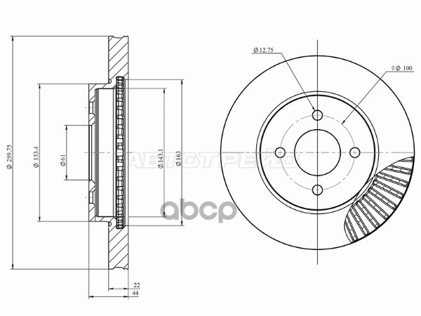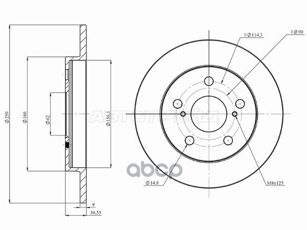 Диск тормозной (Спереди) Toyota Corolla (E180,E210) 12-22 / Corolla Fielder (E140,E160) 06- / Probox
