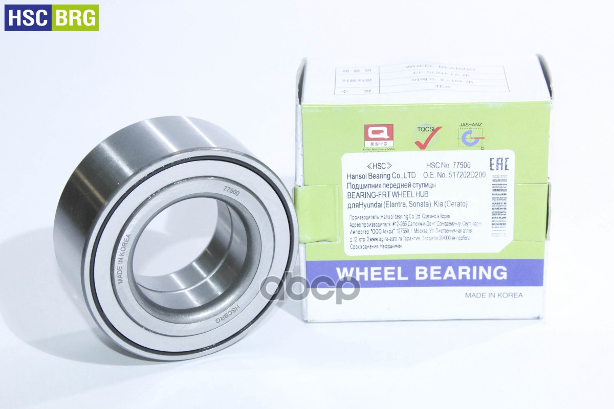 HSC (Hansol Corporation bearing) - единственный корейский производитель, производящий весь модельный ряд подшипников и роликов для корейских автомобилей.Страна: Корея
