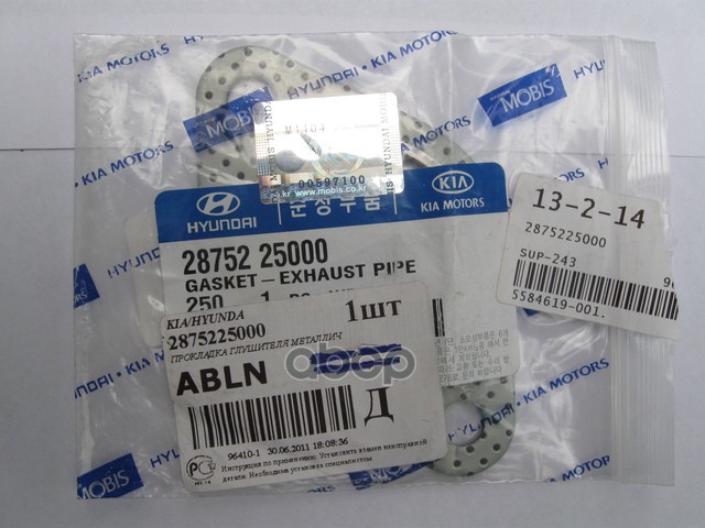Бренд: Hyundai-KIA, артикул: 28752-25000, Прокладка глушителя HYUNDAI ACCENT/GETZ/KIA RIO 28752-25000. |