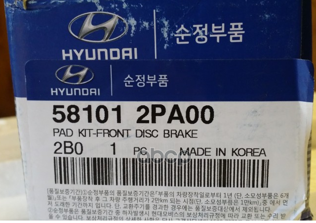 Бренд: Hyundai-KIA, артикул: 581012PA00, PAD KIT-FRONT DISC BRAKE. |