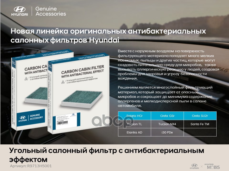 Бренд: Hyundai-KIA, артикул: R9713H5001, Угольный салонный фильтр с антибактериальным эффектом. |