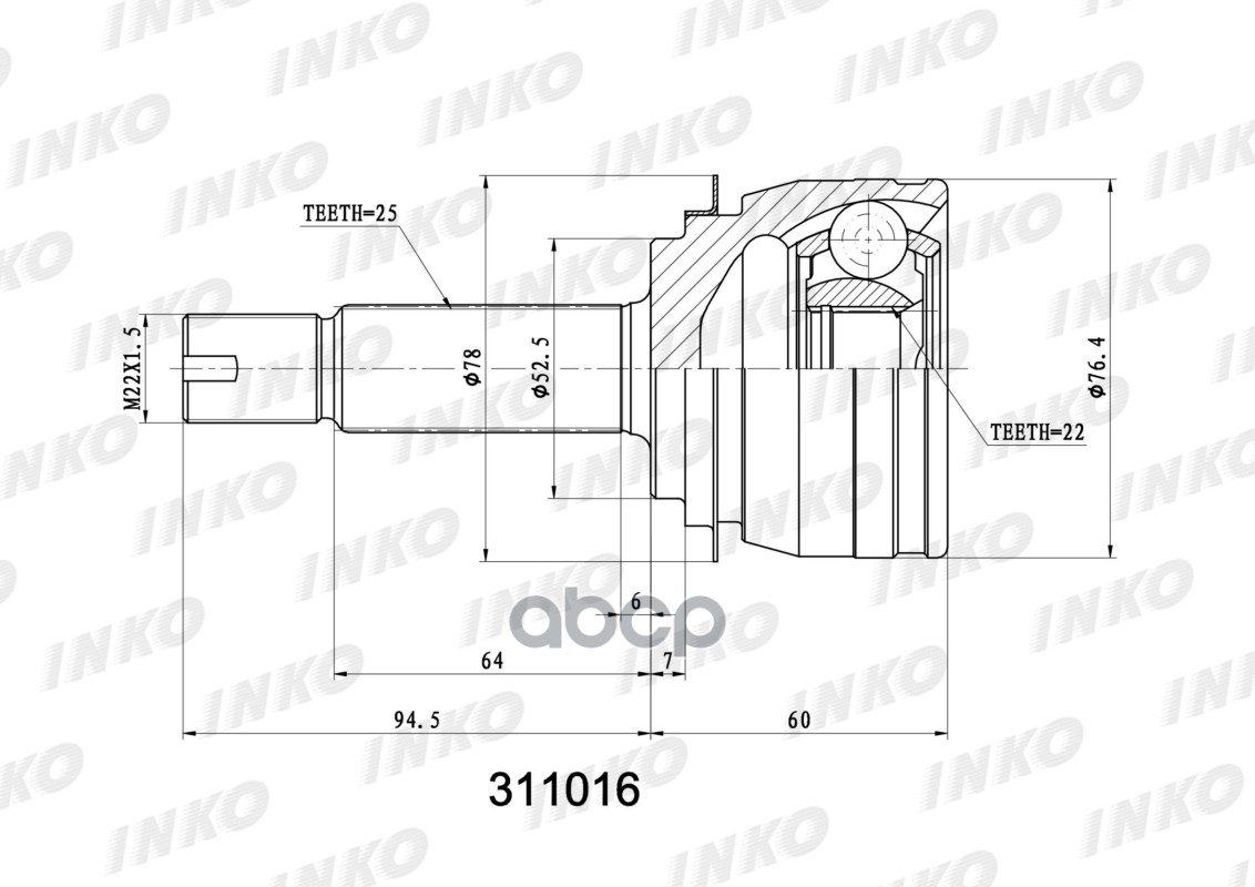 ШРУС внешний 27/25 ABS 48 | перед прав/лев | HYUNDAI TUCSON (JM) 2.0 (104 kW) 2004.08- 311062A