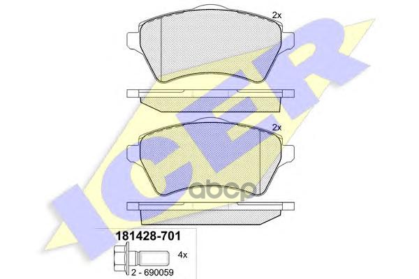 Колодки торм. ALFA ROMEO Mito 08->, FIAT 500 07->/Grande Punto 05->/Linea 07->/Punto12->
