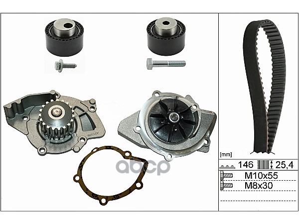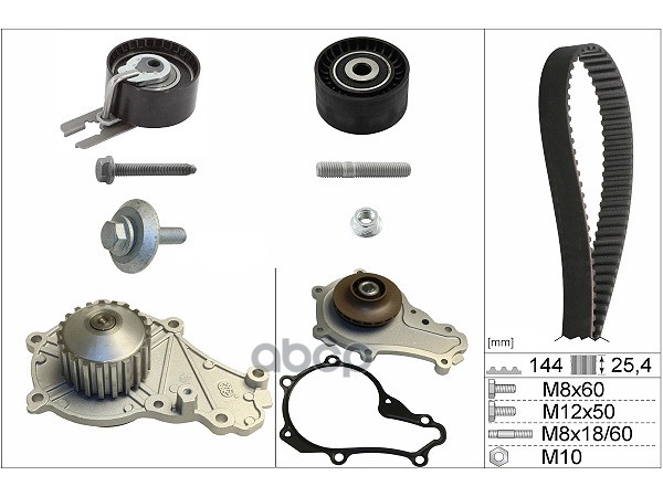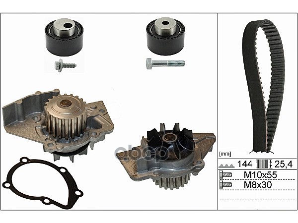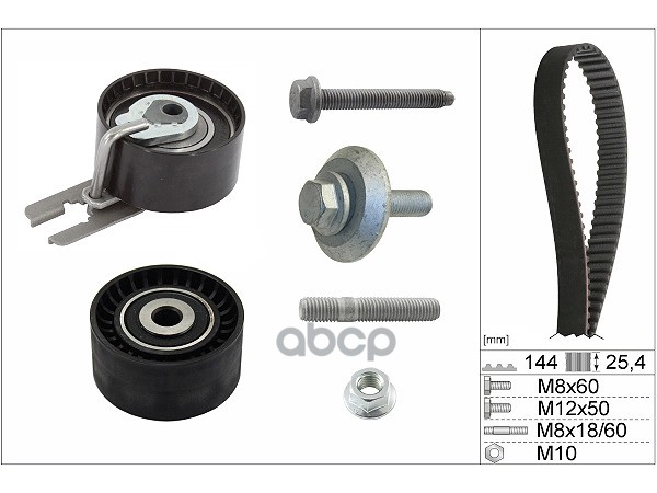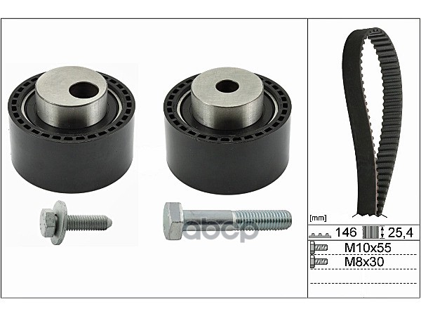 Ремень ГРМ [144x25,4] + 2 ролика CITROEN C2/C3/Nemo, FORD Fusion, MAZDA 2, PEUGEOT 206/207/307 1.4HDI 01->