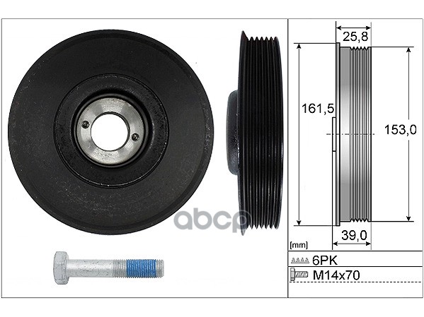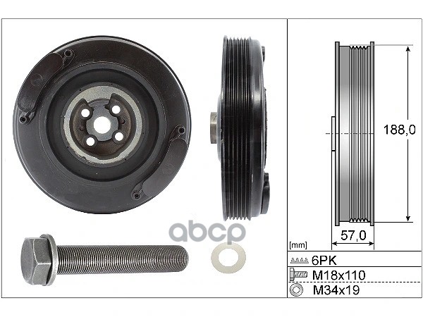 Шкив коленвала AUDI A6, VOLVO 850/S70/S80, VW Crafter/LT 28-35/28-46/T4 2.4/2.5TDI 90->