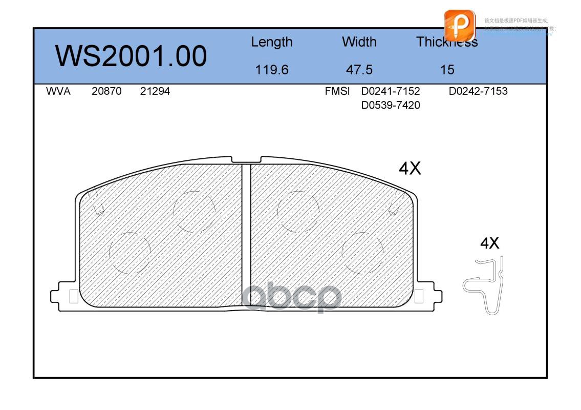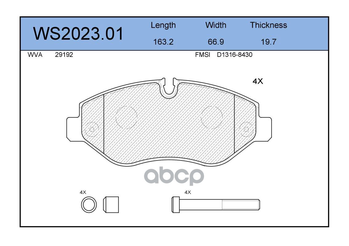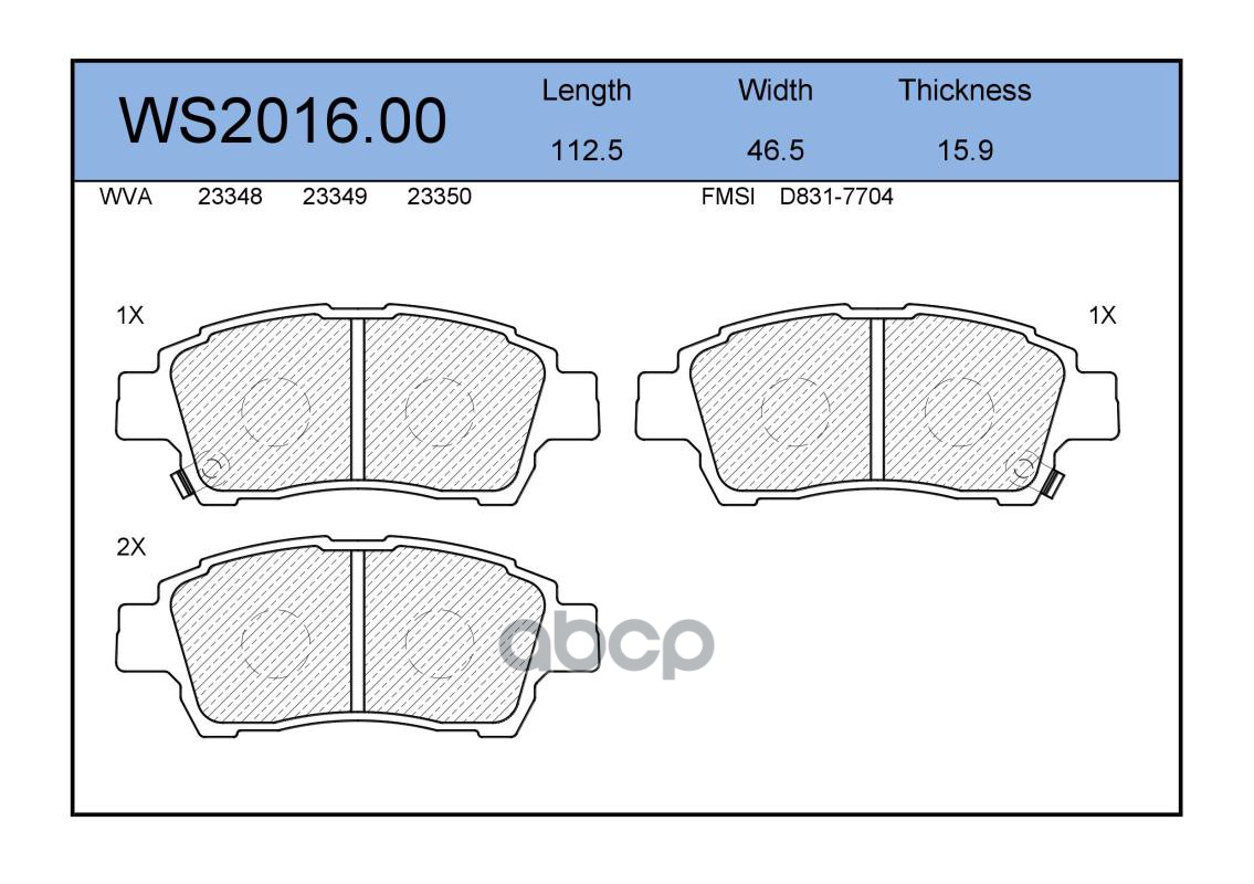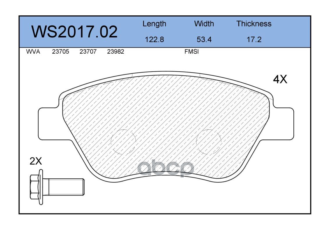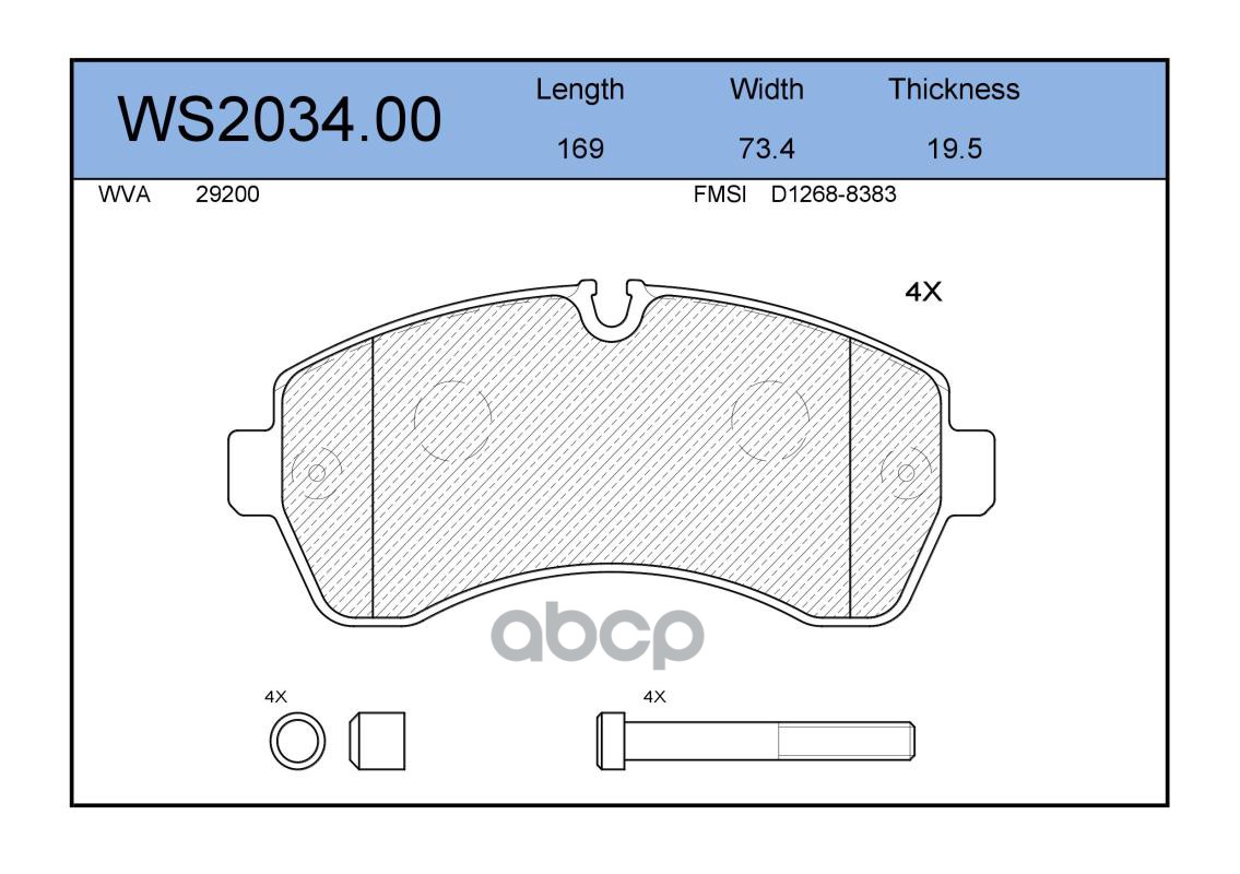 Колодки тормозные дисковые | перед | VW CRAFTER 30-50 Box (2E_) 2.5 TDI 04.2006 - 05.2013 <=> VW CRAFTER 30-35 Bus (2E_) 2.0 TDI 05.2011 - 12.2016 WS2034.00