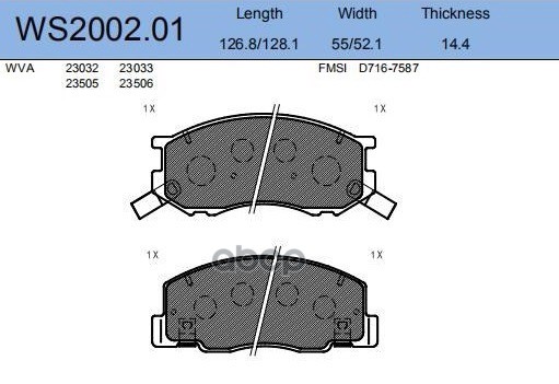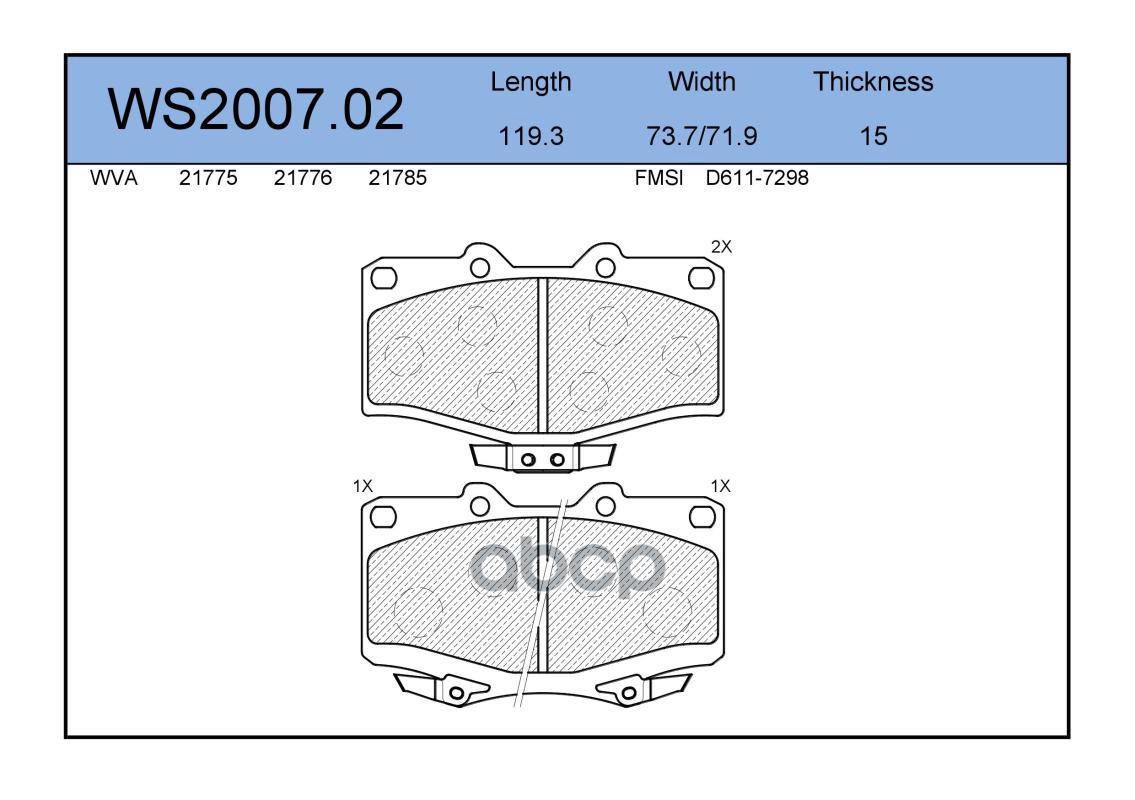 Колодки тормозные дисковые | перед | IVECO DAILY V Platform/Chassis 35C15, 35C15D, 35S15, 40C15, 45C15, 50C15, 60C15, 70C15 09.2011 - 02. <=> IVECO DAILY IV Box Body / Estate 40C15 V, 40C15 V/P 05.2006 - 08.2011 WS2023.00