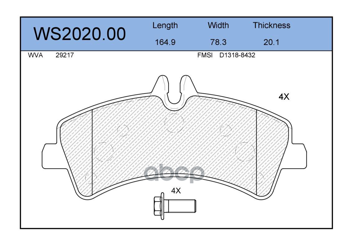 Колодки тормозные дисковые | зад | VW CRAFTER 30-50 Box (2E_) 2.5 TDI 04.2006 - 05.2013 <=> VW CRAFTER 30-35 Bus (2E_) 2.0 TDI 05.2011 - 12.2016 WS2020.00