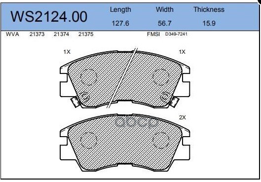 Колодки тормозные дисковые | перед | MITSUBISHI L 300 III Bus (P0_W, P1_W, P2_W) 2.5 D (P05W, P15W, P25W) 11.1986 - 05.2004 <=> MITSUBISHI PAJERO I (L04_G, L14_G) 2.6 4WD (L042G) 01.1983 - 09.1987 WS2124.00