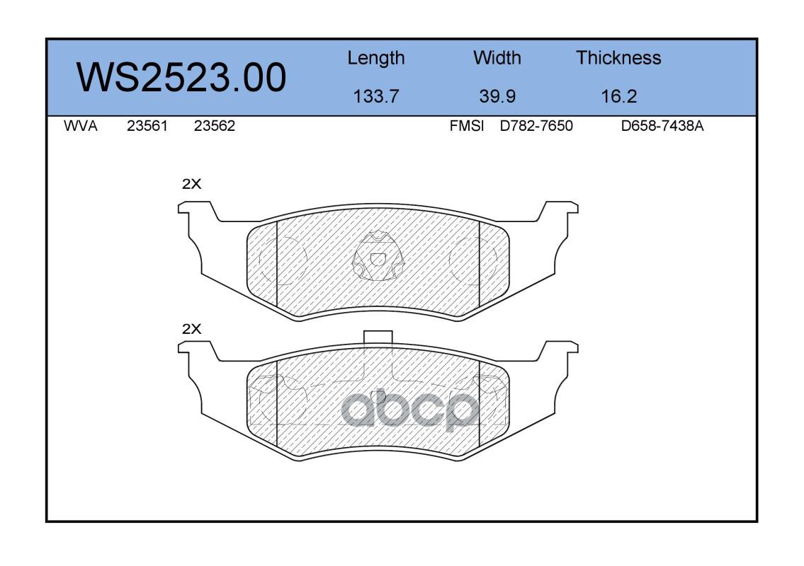 Колодки тормозные дисковые | зад | DODGE CARAVAN 2.4 i 01.1995 - 03.2001 <=> CHRYSLER SEBRING (JR) 2.4 04.2001 - 06.2007 WS2523.00