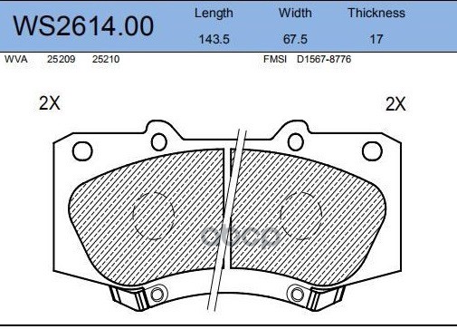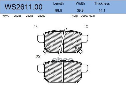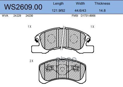 Колодки тормозные дисковые | перед | DAIHATSU CUORE VI (L251, L250_, L260_) 1.0 05.2003 - <=> DAIHATSU CUORE VII (L275_, L285_, L276_) 1.0 04.2007 - WS2609.00