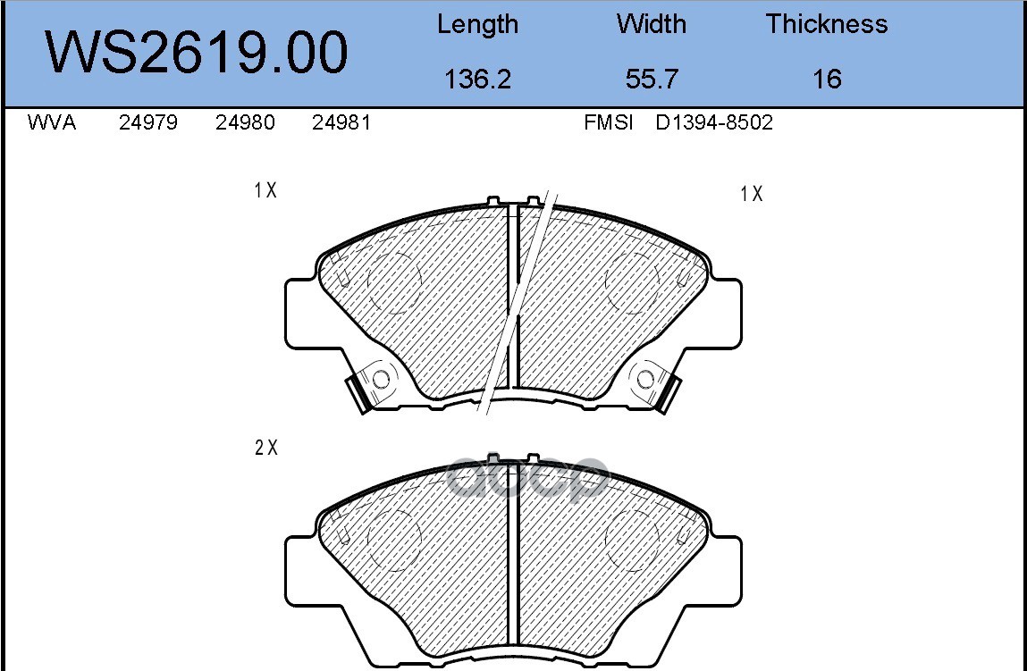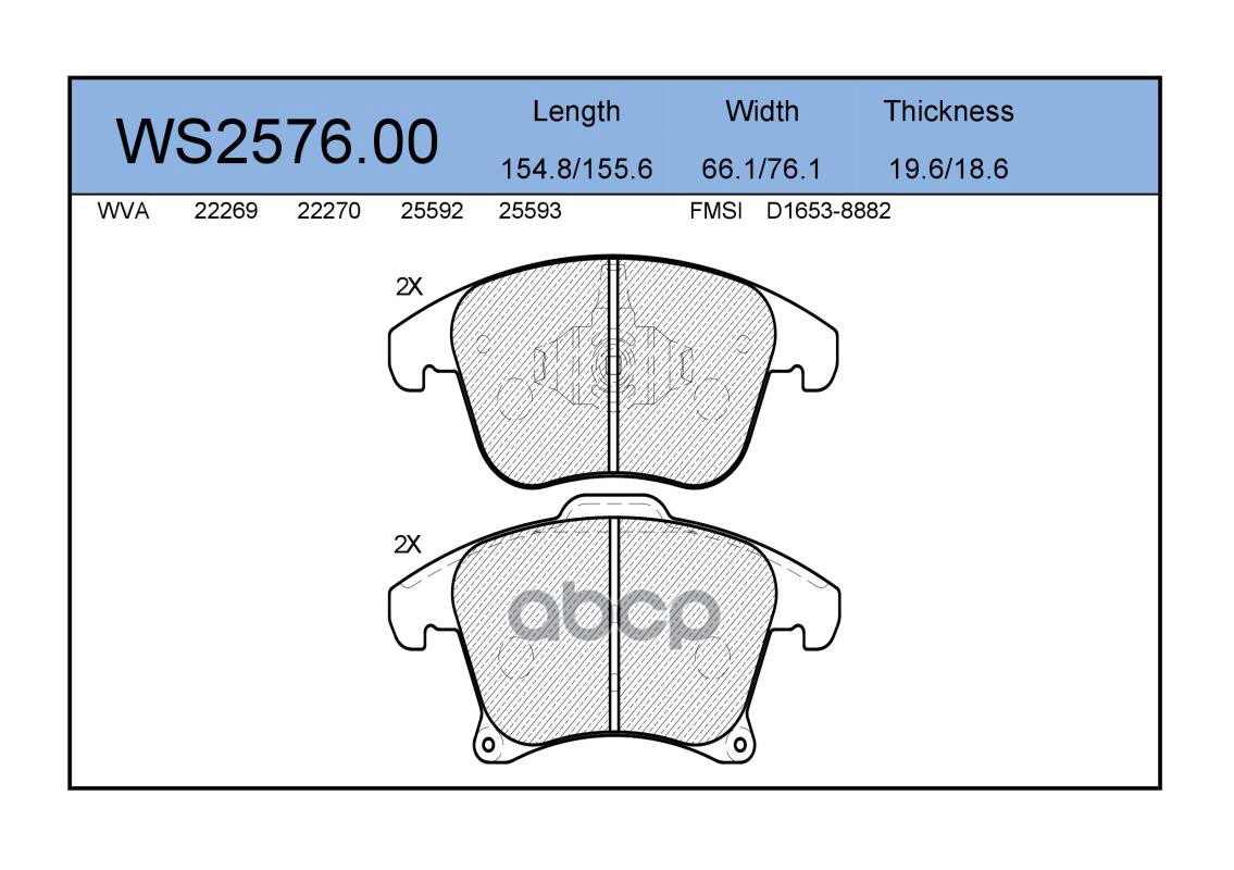Колодки тормозные дисковые | перед | HONDA JAZZ III (GE_, GG_, GP_) 1.3 i 07.2008 - <=> HONDA CIVIC VIII Saloon (FD, FA) 1.3 Hybrid (FA3, FD3) 01.2006 - WS2619.00