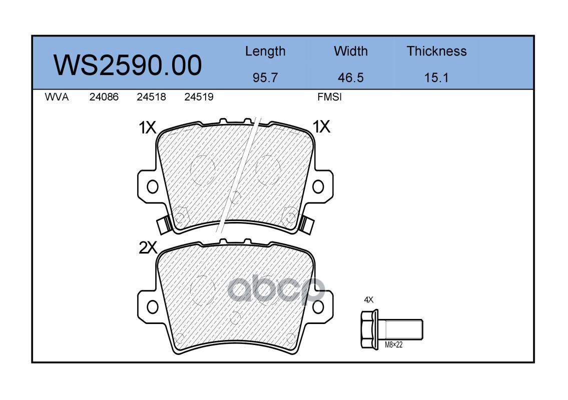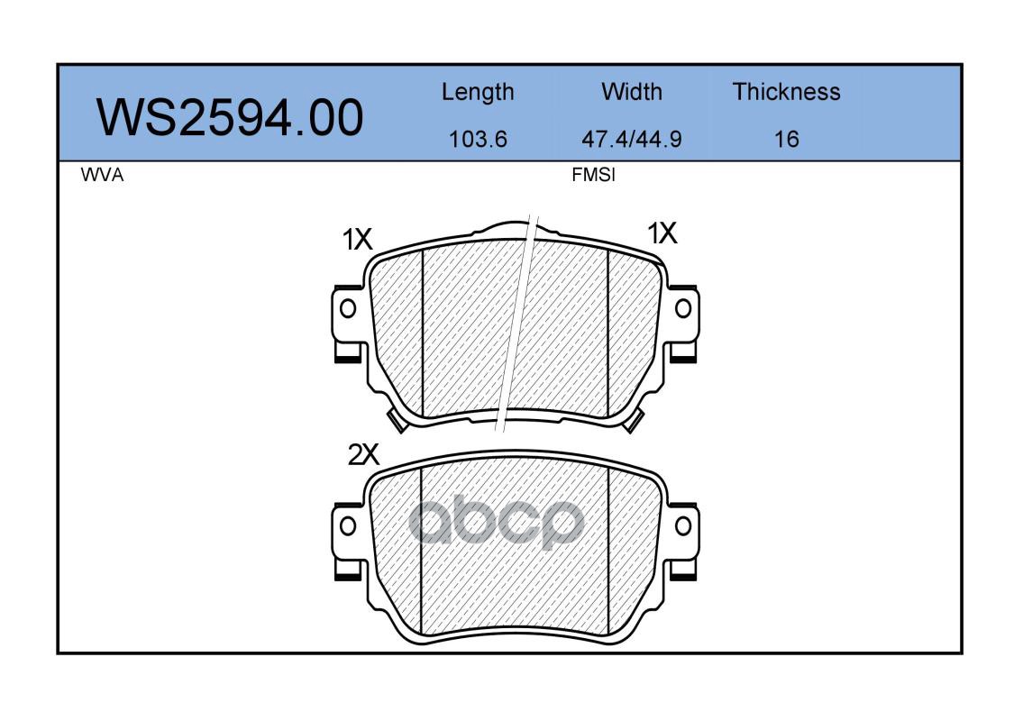 Колодки тормозные дисковые | зад | HONDA CIVIC VIII Hatchback (FN, FK) 1.8 (FN1, FK2) 09.2005 - <=> HONDA CIVIC IX (FK) 1.8 i-VTEC (FK2) 02.2012 - WS2590.00