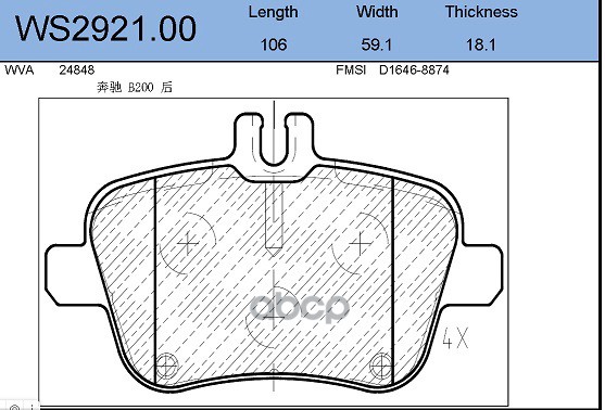 Колодки тормозные дисковые | перед | Chery Tiggo 4, 2.0 CVT 17 - 19 / Chery Tiggo 7, 2.0 CVT 16 - 20 / Chery Tiggo 4, 2.0 MT 17 - 19 /Chery Tiggo 8, 2.0 CVT 2019 -> / Chery Tiggo 8 PRO, 1.6 AMT 21 -> WS2927.00