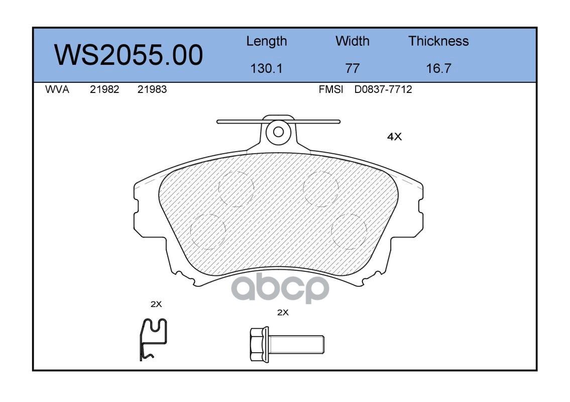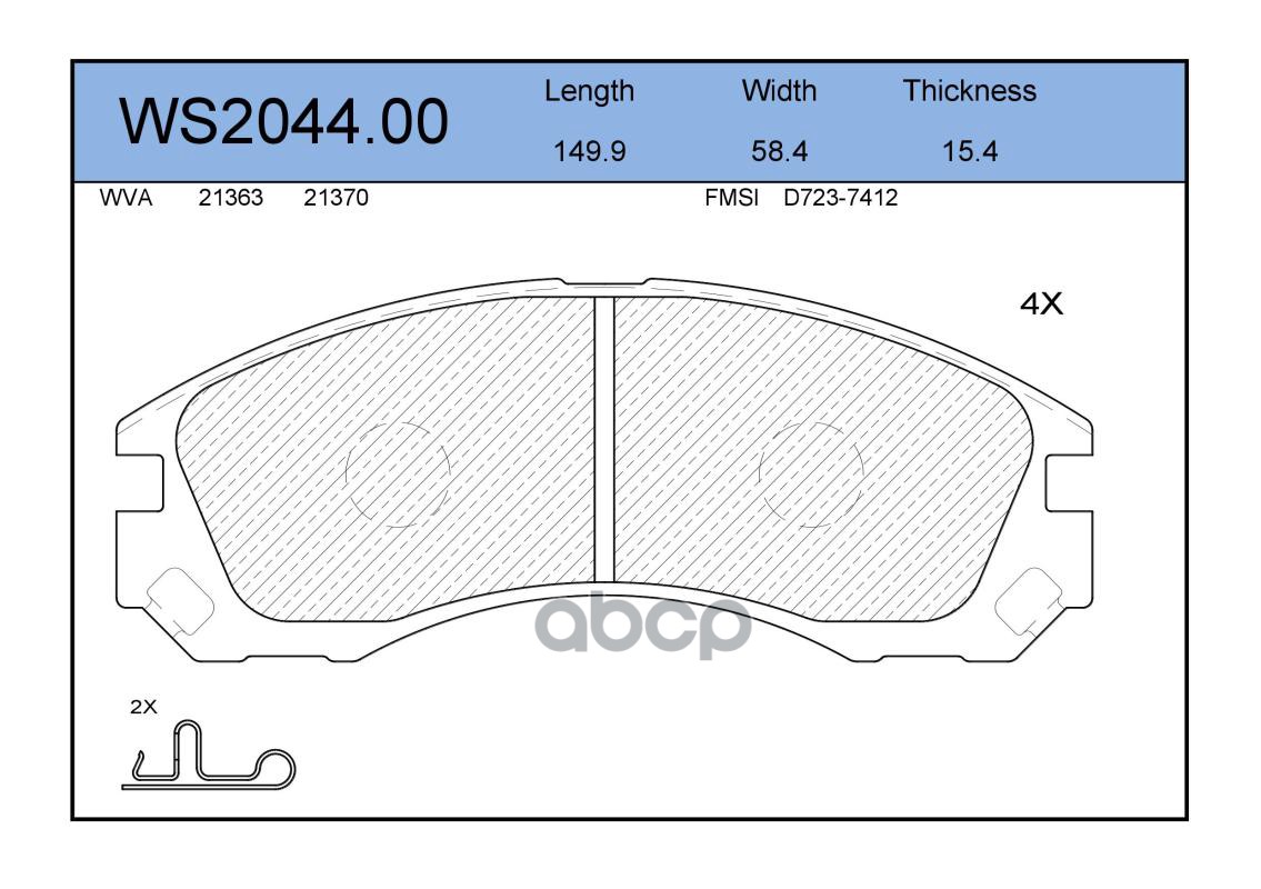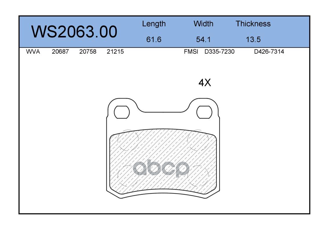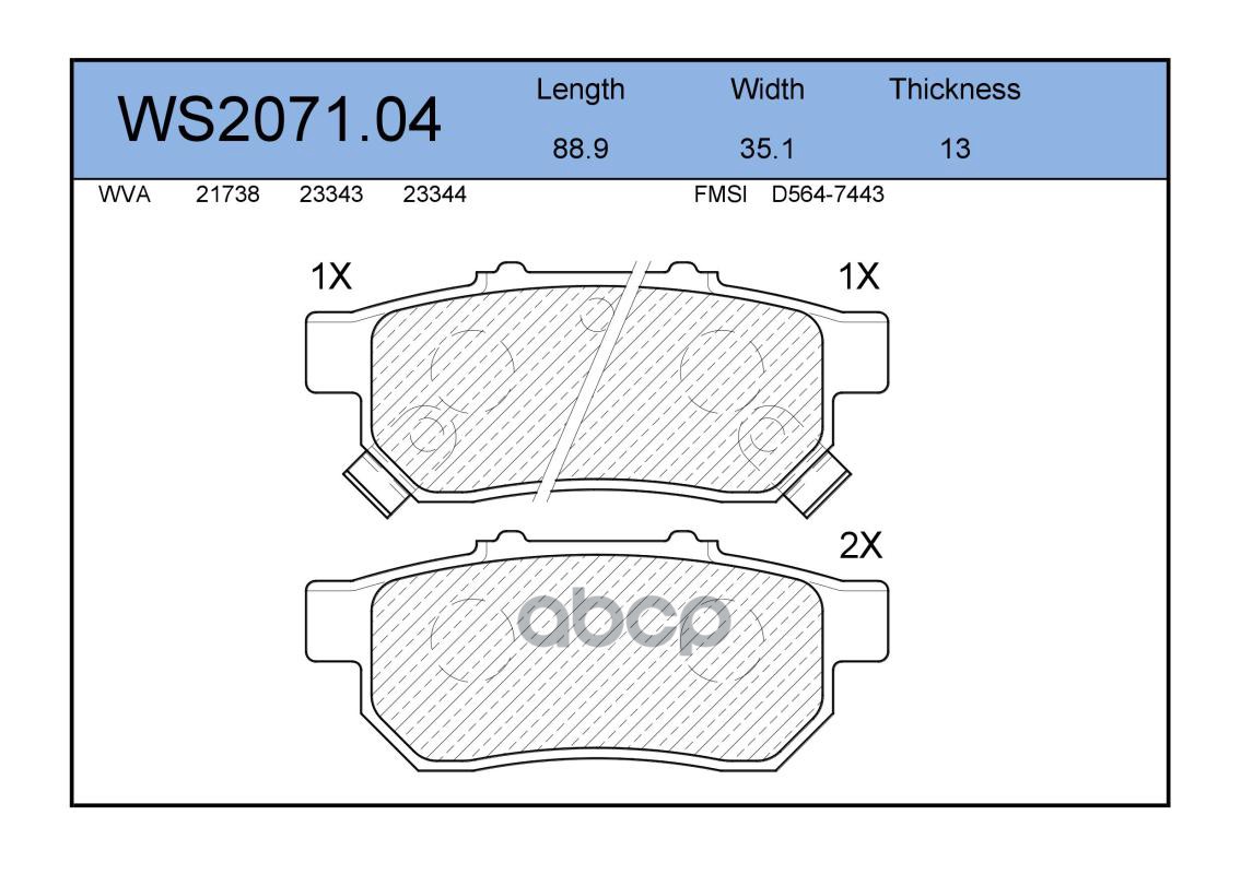 Колодки тормозные дисковые | перед | PEUGEOT 4007 (GP_) 2.4 16V 01.2008 - <=> MITSUBISHI PAJERO SPORT I (K7_, K9_) 2.5 TD (K94W) 11.1998 - WS2044.01