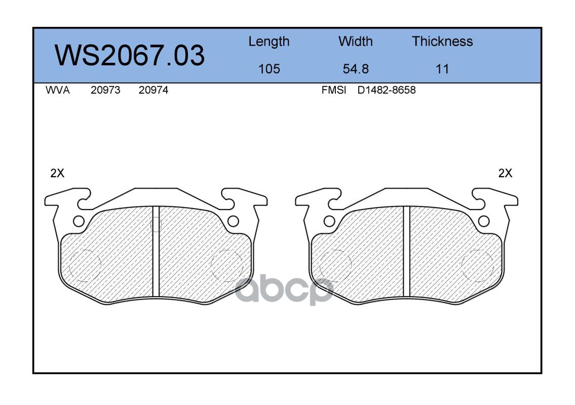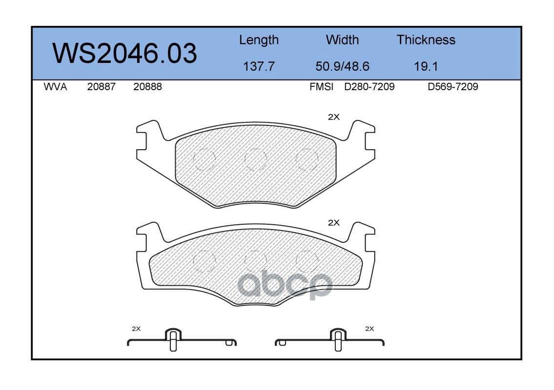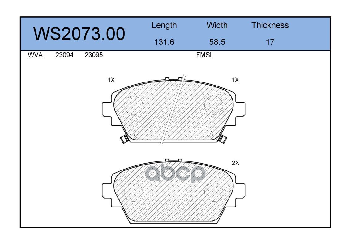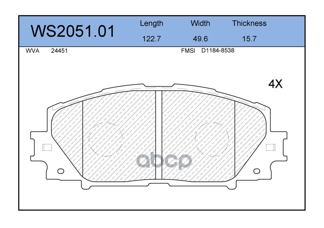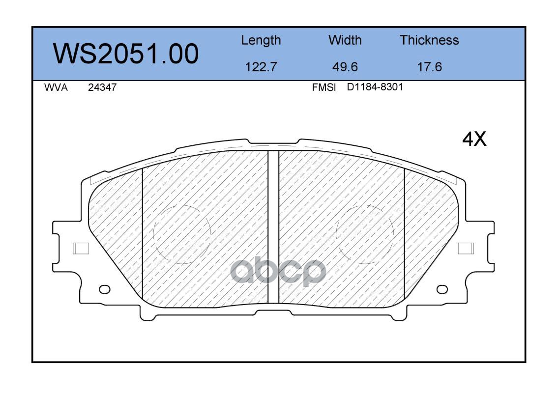 Колодки тормозные дисковые | перед | TOYOTA YARIS (_P9_) 1.5 (NCP91_) 11.2005 - <=> TOYOTA YARIS (_P9_) 1.0 VVT-i (KSP90_) 01.2005 - 11.2011 WS2051.00