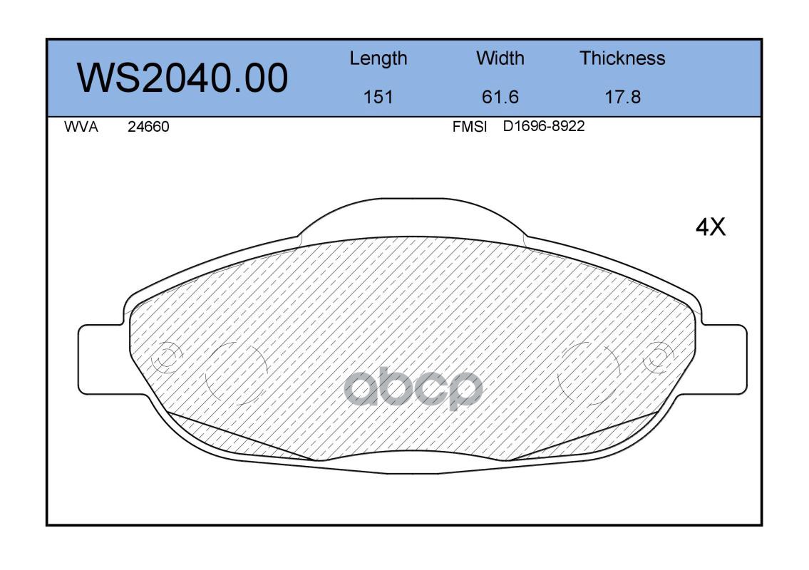 Колодки тормозные дисковые | перед | PEUGEOT 308 (4A_, 4C_) 1.6 16V 09.2007 - <=> PEUGEOT 308 SW (4E_, 4H_) 1.6 16V 09.2007 - WS2040.00
