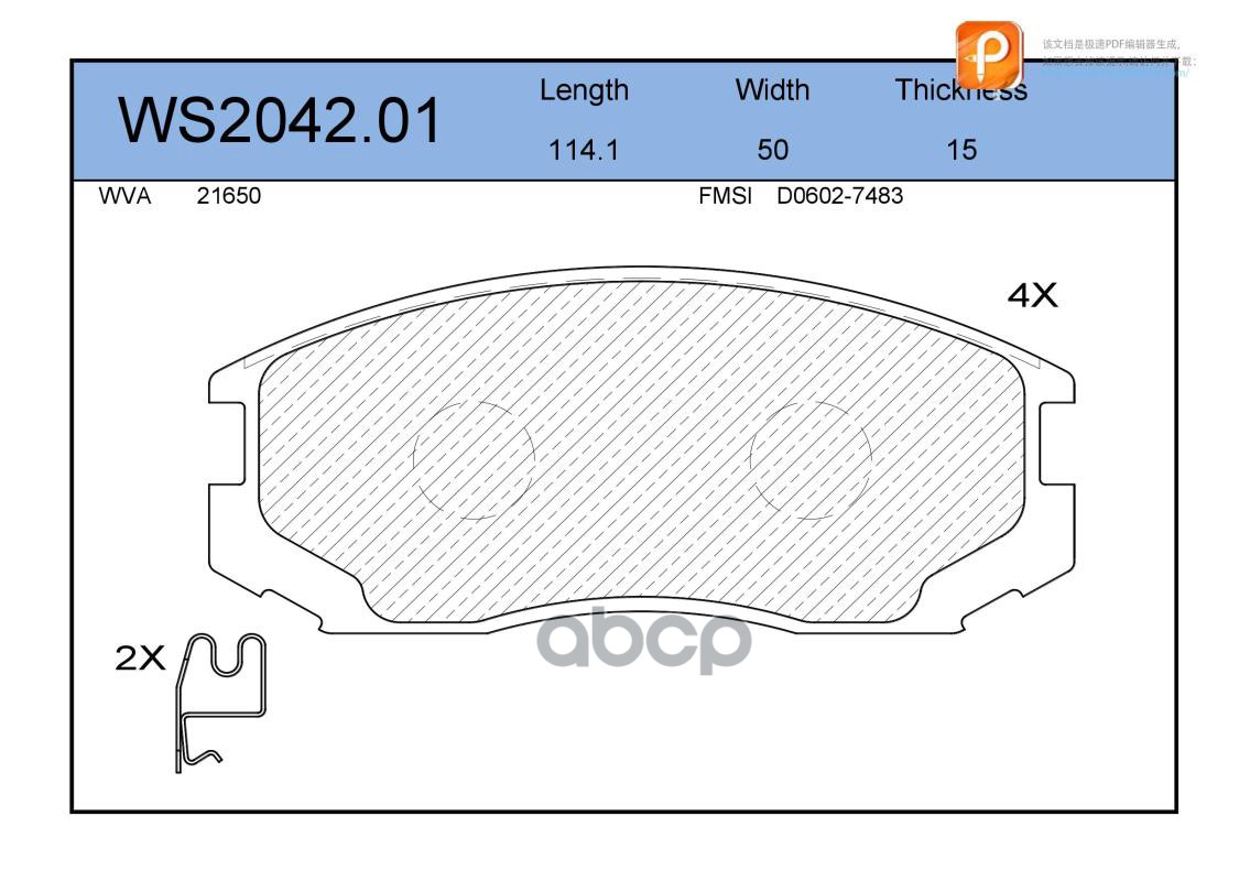Колодки тормозные дисковые | перед | MITSUBISHI LANCER VI (CJ-CP_) 1.3 12V (CK1A) 12.1995 - 08.2003 <=> MITSUBISHI LANCER V (CB_A, CD_A, CE_A) 1.6 16V (CB4A) 06.1992 - 12.1996 WS2042.01