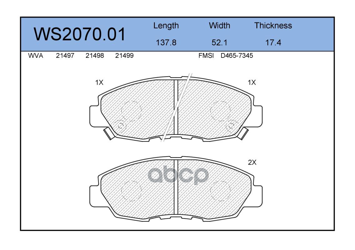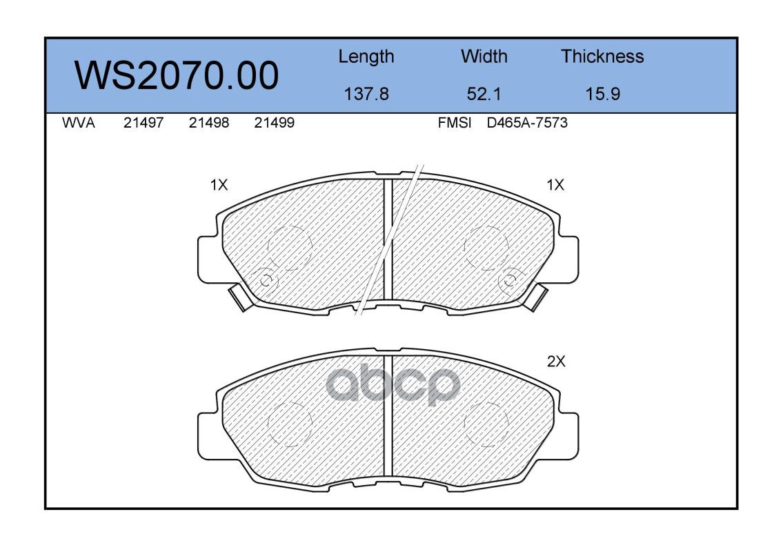 Колодки тормозные дисковые | перед | HONDA ACCORD VI (CK, CG, CH, CF8) 1.8 i (CG8) 10.1998 - 12.2002 <=> HONDA ACCORD VI (CK, CG, CH, CF8) 2.0 i (CG9) 10.1998 - 01.2001 WS2073.00