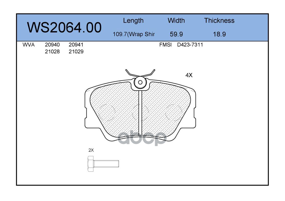 Колодки тормозные дисковые | перед | MAZDA TRIBUTE (EP) 3.0 V6 AWD 04.2004 - 05.2008 <=> MAZDA TRIBUTE (EP) 2.3 AWD 04.2004 - 05.2008 WS2043.00